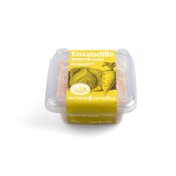 Col blanca rallada (44%), Salsa (aceite de girasol, agua, azúcar, yema de huevo pasteurizada, vinagre de vino blanco, sal, mostaza preparada (agua, vinagre de alcohol, mostaza, jarabe de glucosa, sal, almidón modificado de maíz, estabilizadores (E-410, E-412 y E-440i), especias, acidulante (E-330), conservantes (E-202 y E-211) y aroma), espesante (goma xantana), antioxidantes (ácido cítrico y EDTA cálcico disódico), conservadores (sorbato potásico y benzoato sódico)), zanahoria en tiras (16%) (zanahoria, agua, vinagre, azúcar, sal, antioxidante (E-300), acidulante (E-330)) y cebolla (4%). Puede contener trazas de apio, crustáceos, soja, moluscos, gluten, sulfitos, sésamo, leche y pescado.