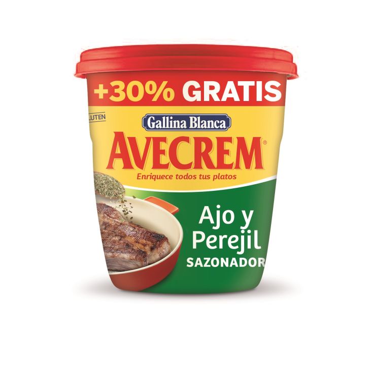 Sal, ajo 34%, potenciador del sabor (glutamato monosódico), aromas (con leche, trigo), perejil 6%, maltodextrina, aceite de girasol, puerro, especias, acidulante (ácido cítrico). Puede contener trazas de huevo, soja, apio, pescado, crustáceos.